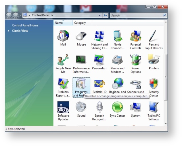 - Double click on "Programs and Features"
